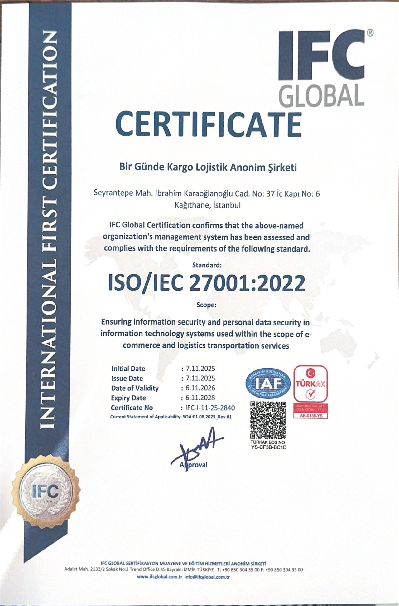 Bir Günde Kargo, kargo ve kurye sektöründeki sorunlara çözüm olarak, her şey bir günde anlayışı ile operasyonunu düzenlemiş ve sektöre yeni bir bakış açısı kazandırmıştır.ISO 9001 ISO 10002 ISO 14001 ISO 45001 BTK Yetki Belgesi M Belgesi K Belgesi HİZMETLERİMİZ HAKKINDA DAHA FAZLA BİLGİ İSTERMİSİNİZ?Bizimle iletişime geçin. İhtiyaçlarınıza uygun teslimat çözümlerini birlikte belirleyelim. İletişime Geçin